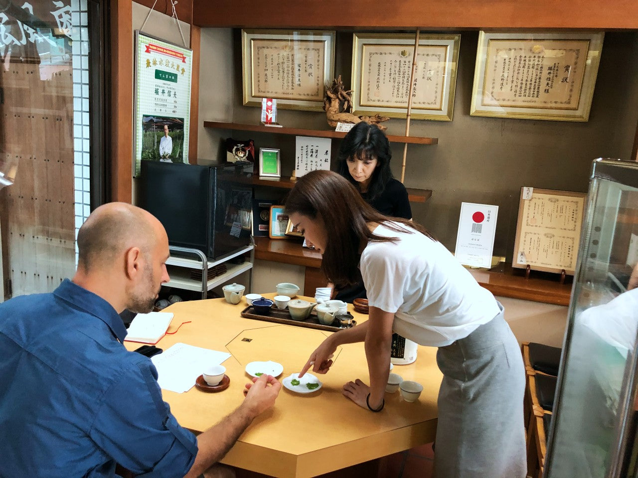 Japán, Kyótó prefektúra, Uji. A Horii Shichimeien történelmi Uji teakertekről válogat, hagyományos feldolgozással és modern minőség ellenőrzéssel biztosítva az állandó, magas színvonalat.