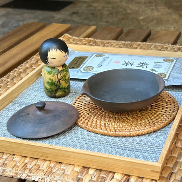 - Design: shiboridashi (jug body + lid, with internal ribs to retain the leaf).