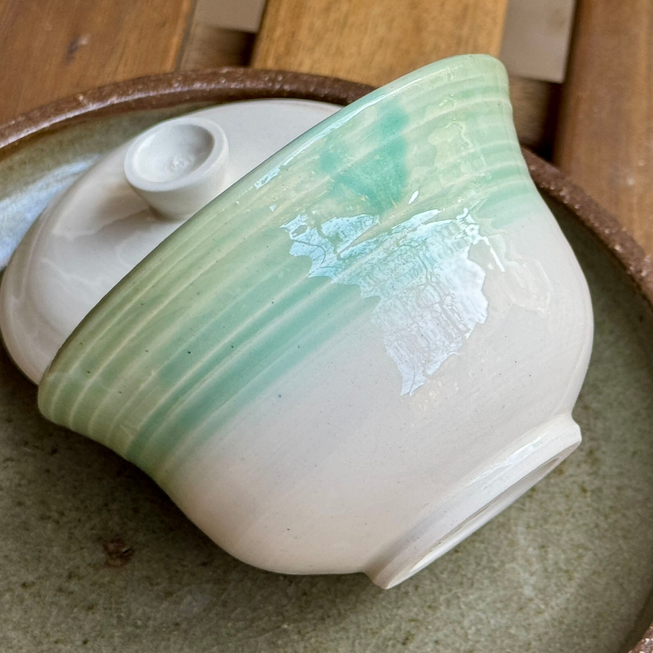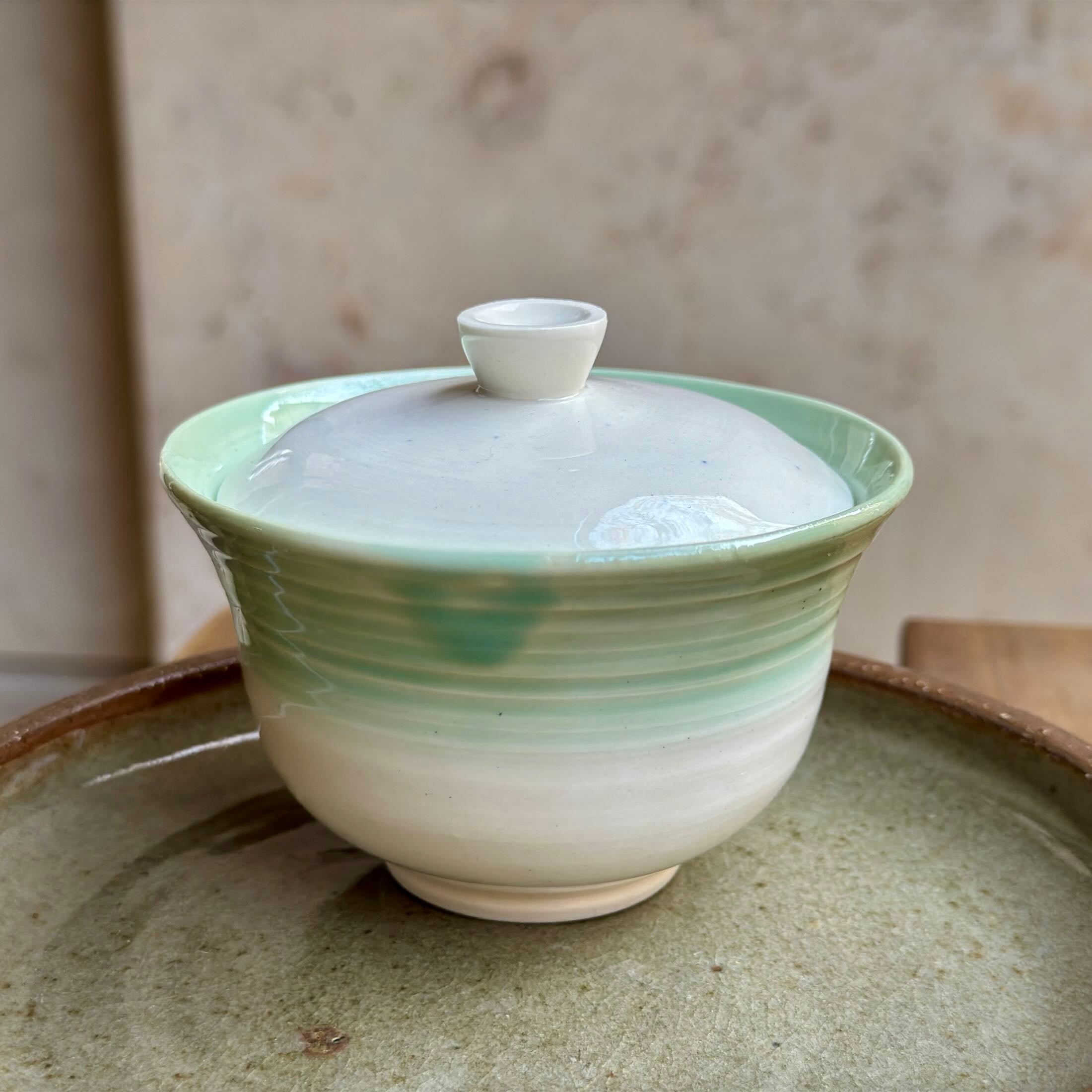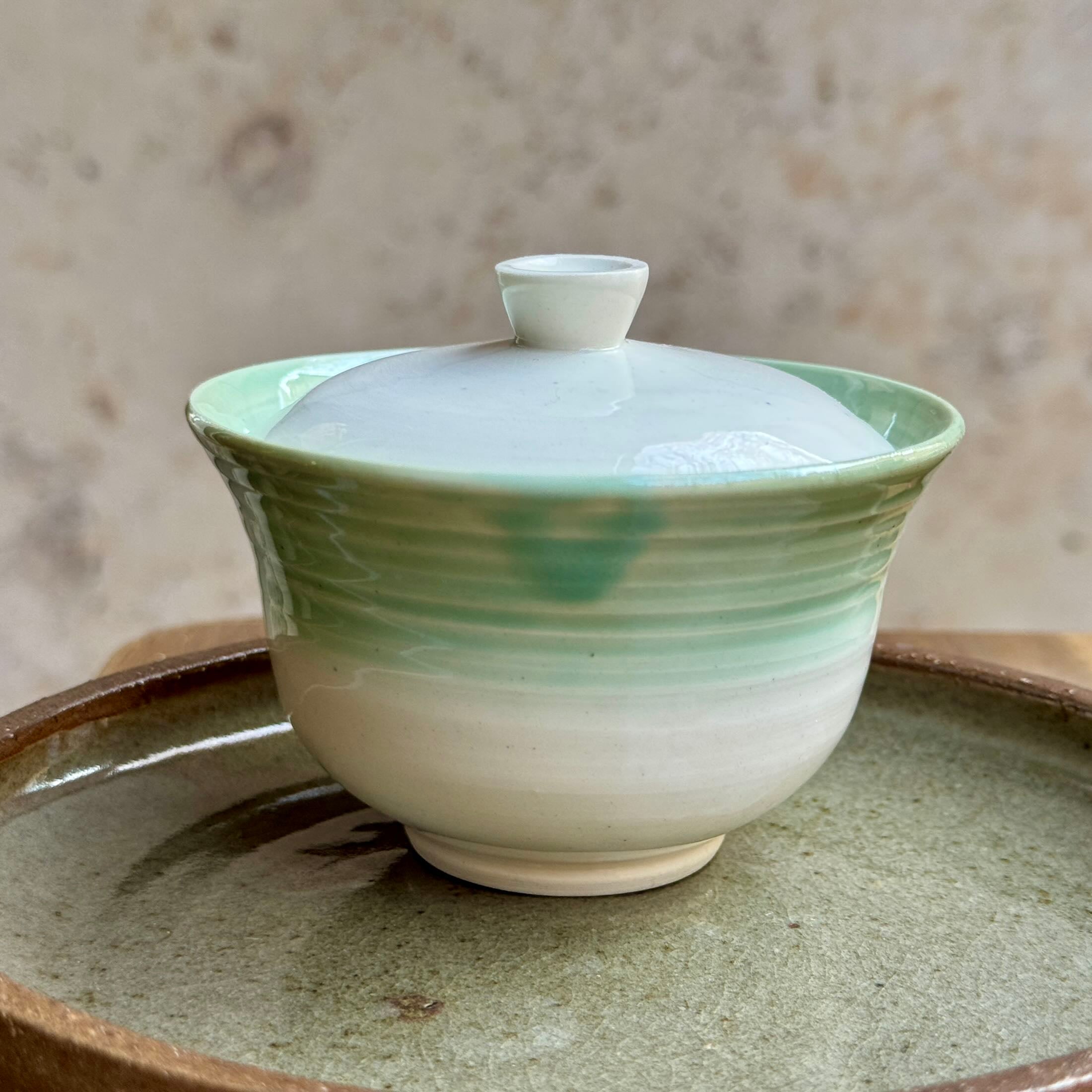 Hand-rolled, unique gaiwan with a turquoise gradient glaze. The classic Chinese utensil is a cup, teapot and lid all in one: it gives free space for the leaves, while the lid allows for a clean, controlled pour by gently turning it.